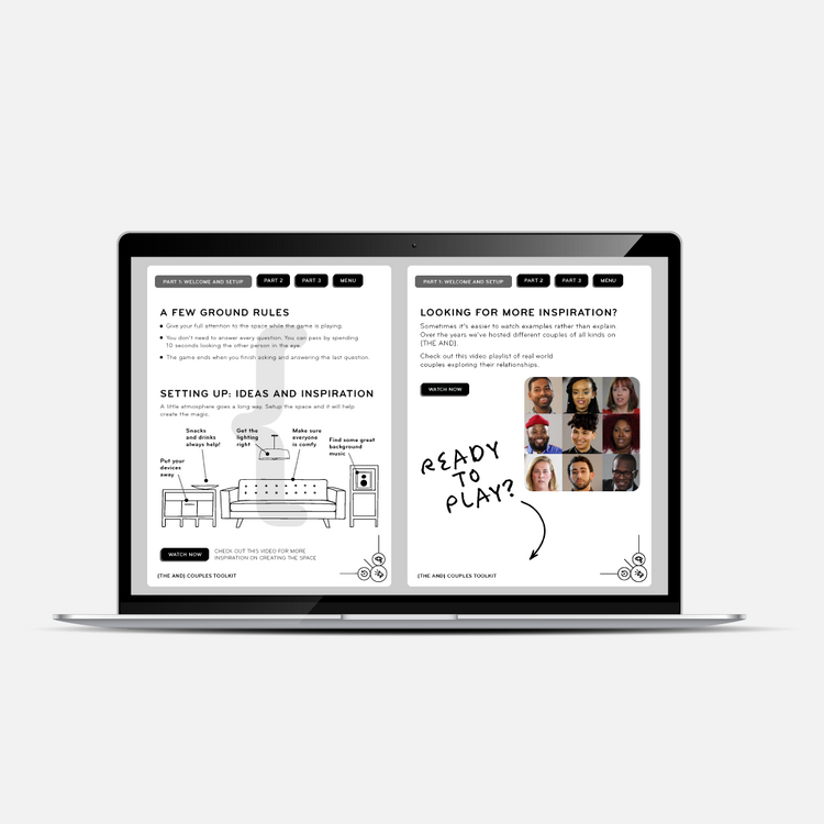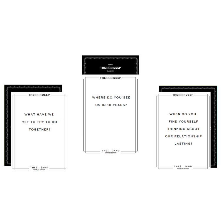 Perfect for cozy nights in or adventures abroad, this bundle provides endless opportunities for meaningful dialogue and connection. With interactive tools, specially crafted playlists, and high-quality physical cards, you'll never run out of ways to appreciate and understand each other. Don't settle for ordinary date nights – invest in a lifetime of passion and deeper relating with {THE AND} Couples Bundle.