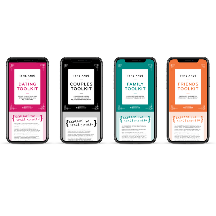 Unlock the power of connection and community with the all new {THE AND} Digital Toolkit Bundle II! With our four newest and incredibly designed toolkits - Dating, Couples, Family, and Friends - you'll have access to a curated collection of content from our community, including hand-picked inspiration moments from our globally loved videos, in-person icebreakers, and interactive tools to help you create incredibly meaningful conversations and experiences with almost anyone in your life!