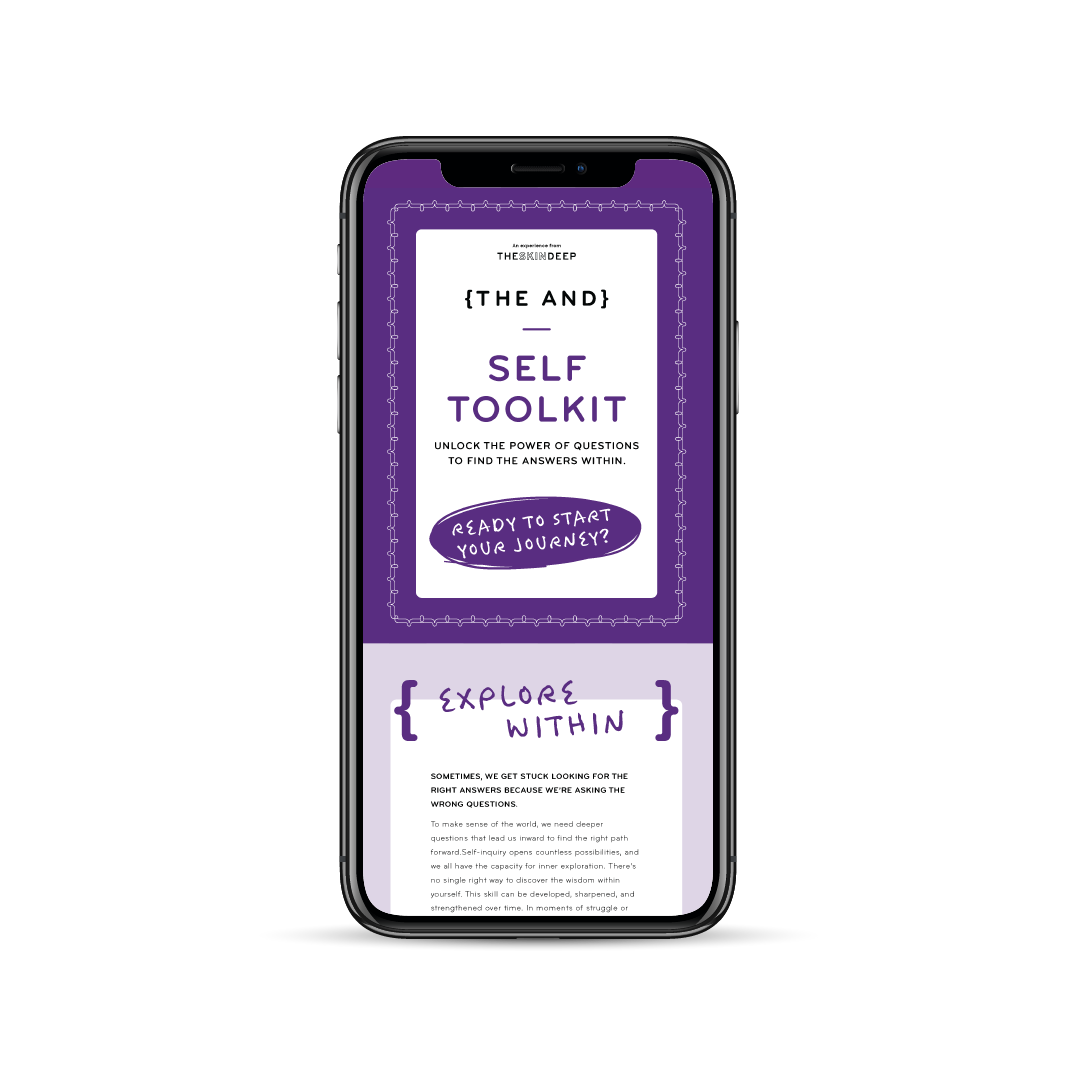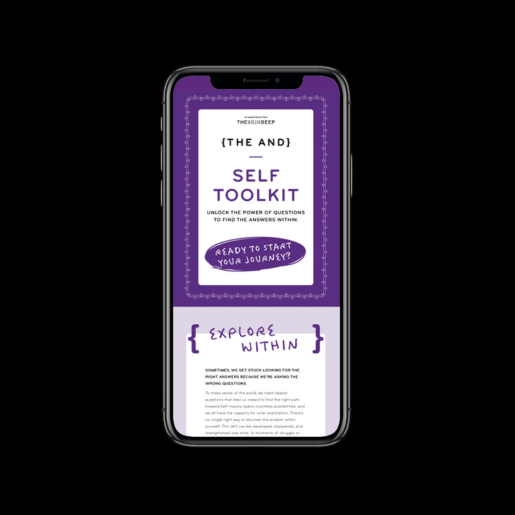 Embark on a transformative journey of self-discovery with {THE AND} Self Toolkit from The Skin Deep. Our specially crafted digital experience is packed with prompts, questions, and tools designed to help you build a strong foundation of self-trust, self-love, inner passion, and self-appreciation. Whether you're just starting your personal growth journey or looking to reignite your inner spark, this toolkit is the perfect resource to help you break down internal barriers and get closer to your authentic self than ever before. So why wait? Download {THE AND} Self Toolkit today and start building the relationship with yourself you've always dreamed of.